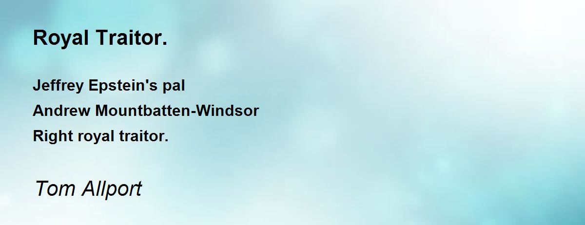 Jeffrey Epstein's pal Andrew Mountbatten-Windsor Right royal traitor.