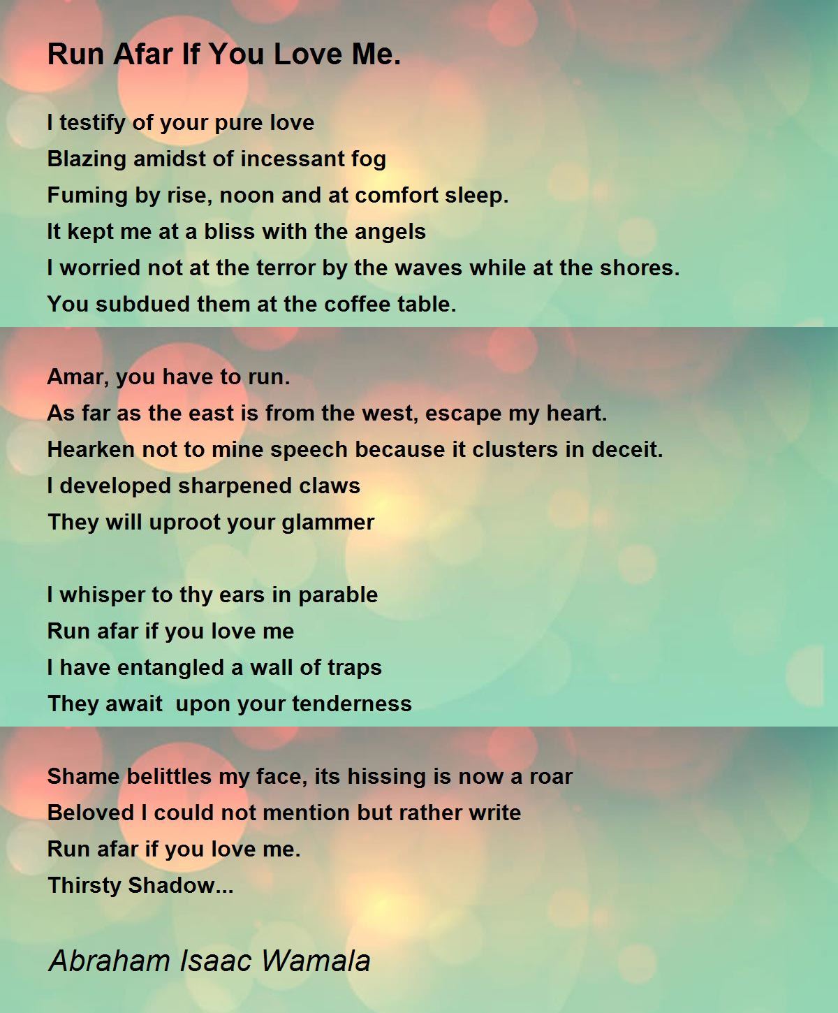 Run afar if you love me