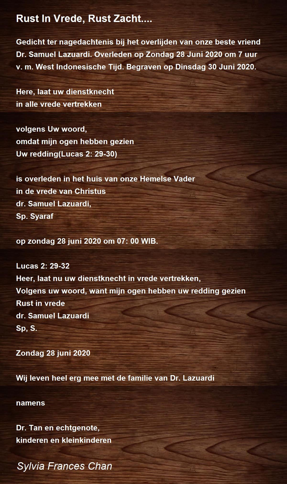 Dr. Samuel Lazuardi. Overleden op Zondag 28 Juni 2020 om 7 uur v.m. West Indonesische Tijd. Begraven op Dinsdag 30 Juni 2020.