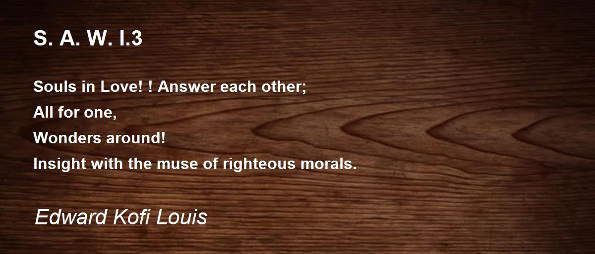 Souls in Love! ! Answer each other; All for one, Wonders around! Insight with the muse of righteous morals.
