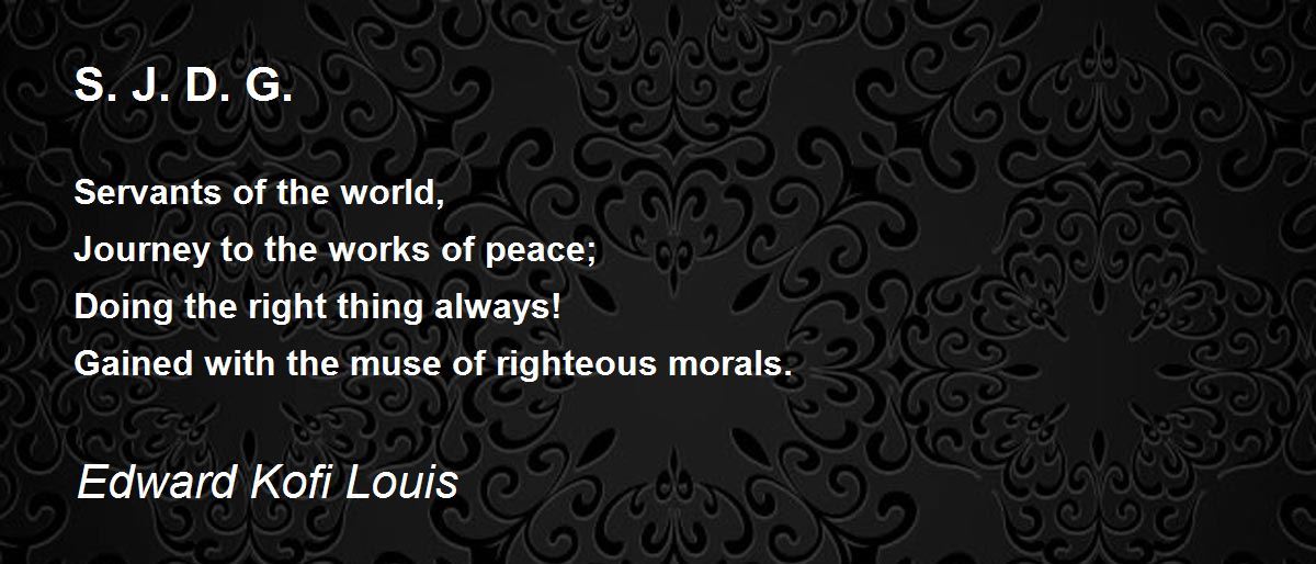 Servants of the world, Journey to the works of peace; Doing the right thing always! Gained with the muse of righteous morals.