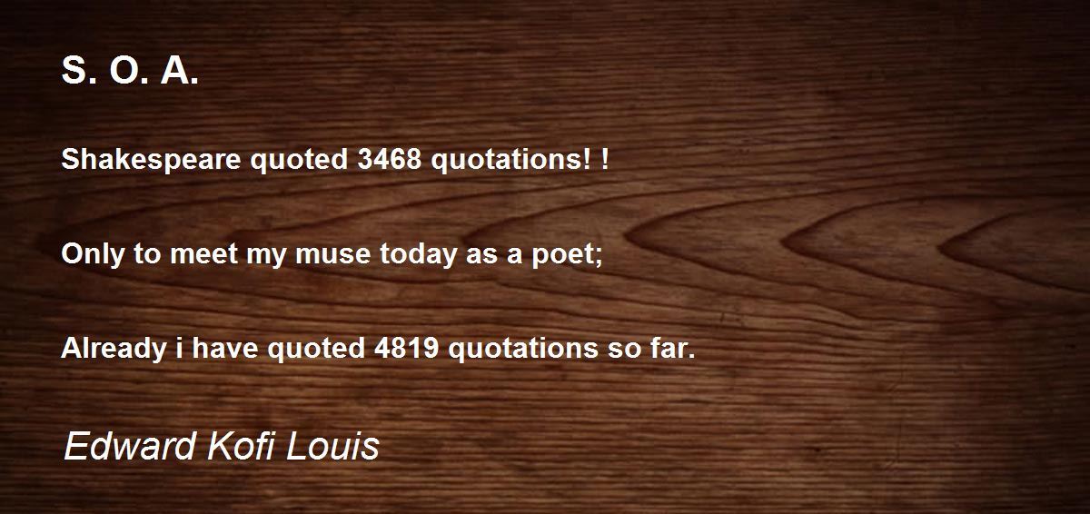 Shakespeare quoted 3468 quotations! ! Only to meet my muse today as a poet; Already i have quoted 4819 quotations so far.