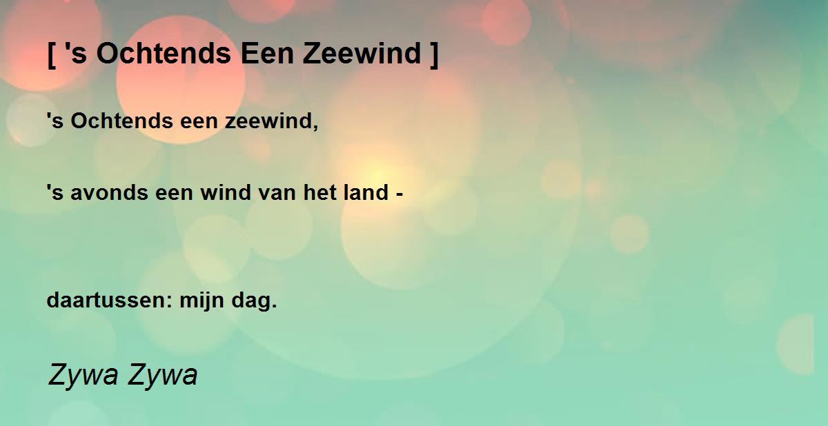 's Ochtends een zeewind, 's avonds een wind van het land - daartussen: mijn dag.