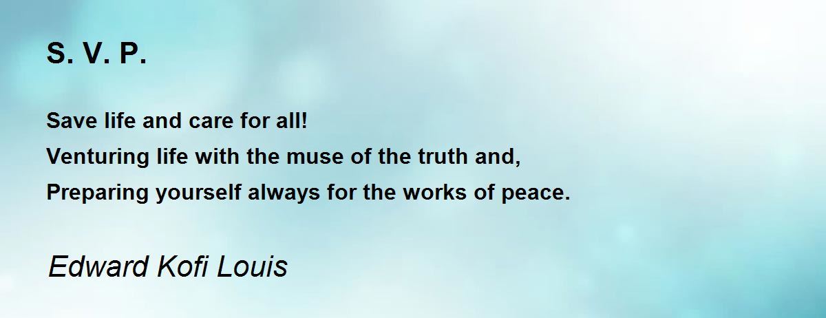 Save life and care for all! Venturing life with the muse of the truth and, Preparing yourself always for the works of peace.