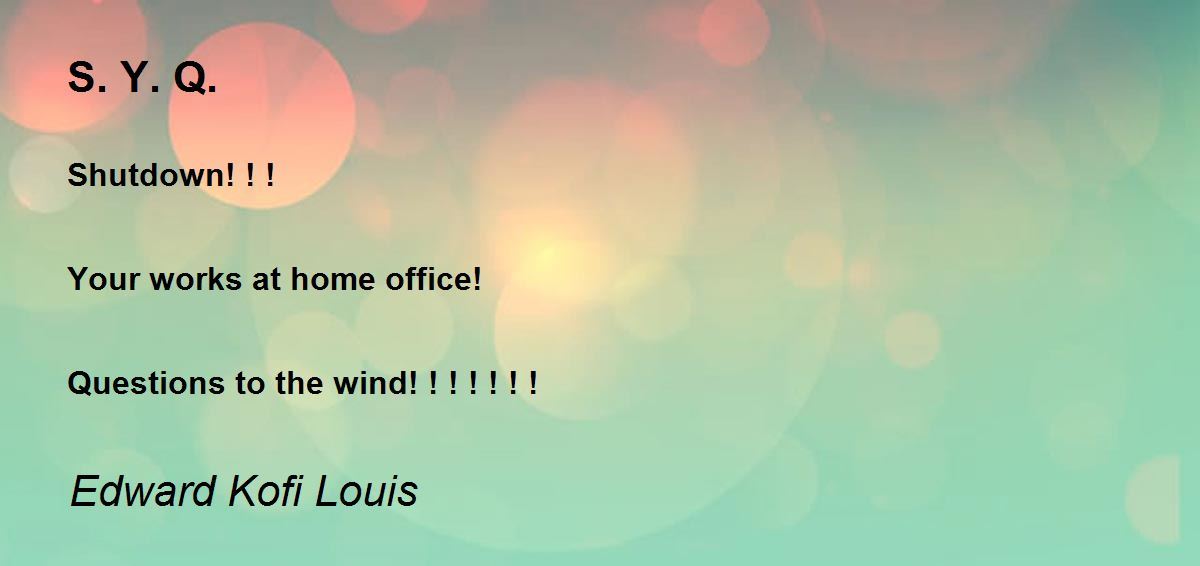 Shutdown! ! ! Your works at home office! Questions to the wind! ! ! ! ! ! !