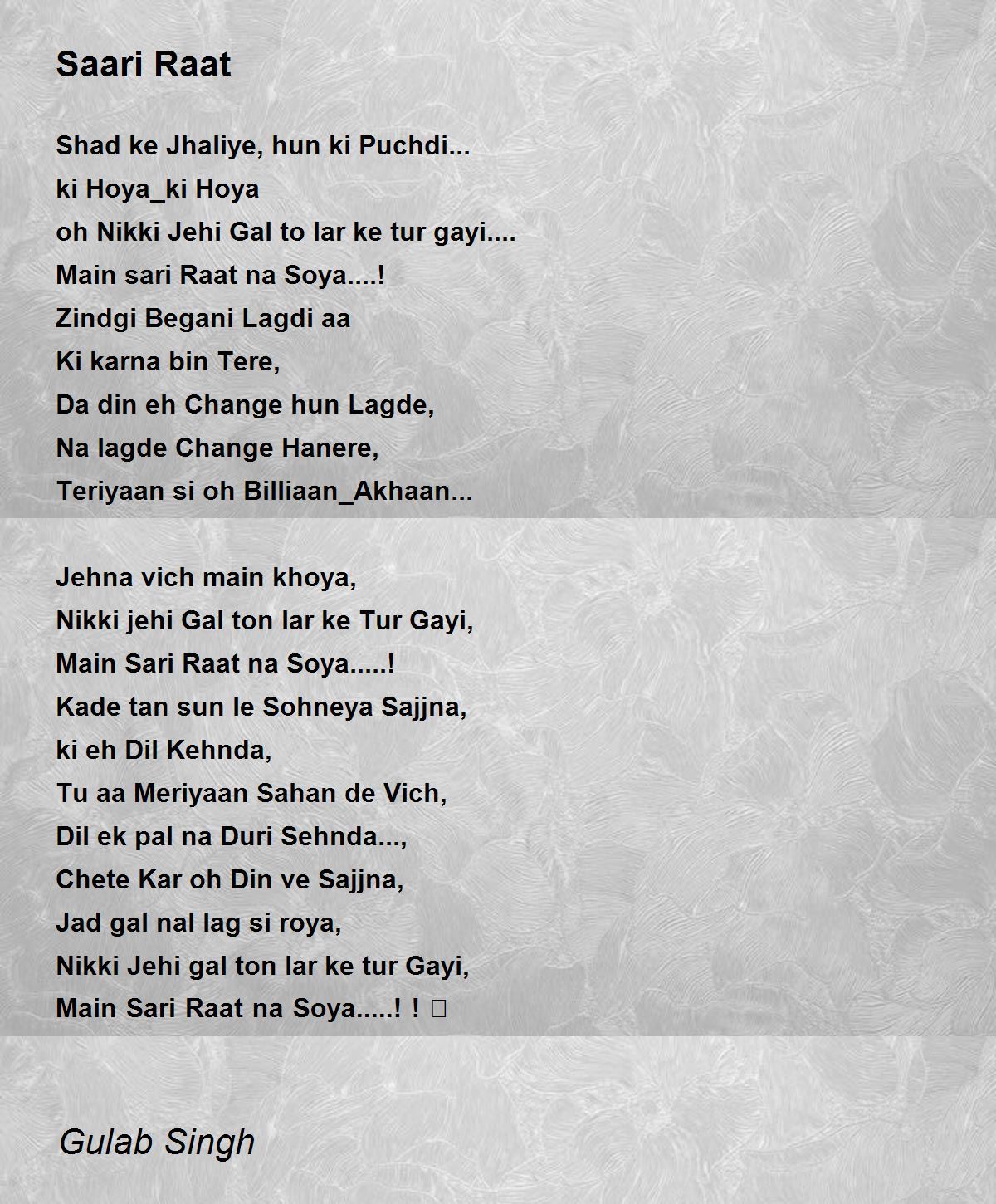 Main sari Raat na Soya....!