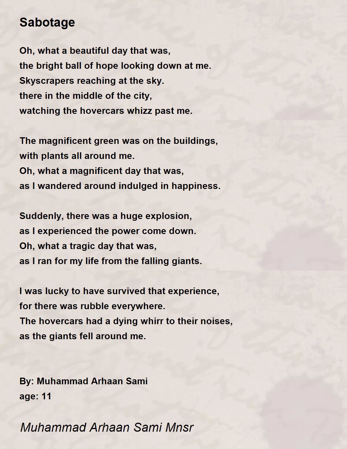 Suddenly, there was a huge explosion, as I experienced the power come down. Oh, what a tragic day that was, as I ran for my life from the falling giants.... very good poem tony