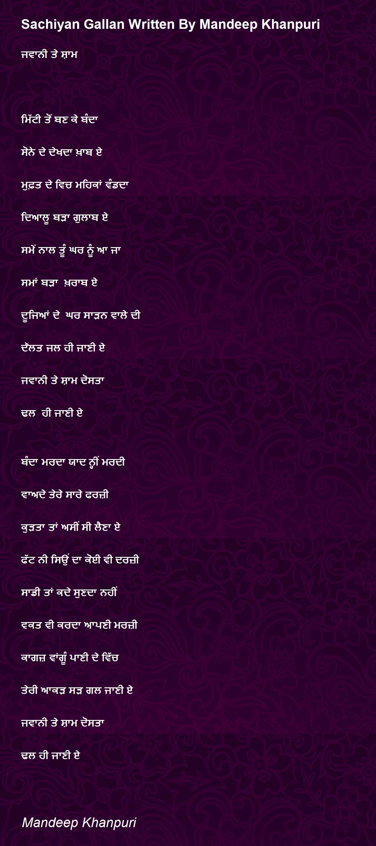 ਜਵਾਨੀ ਤੇ ਸ਼ਾਮ