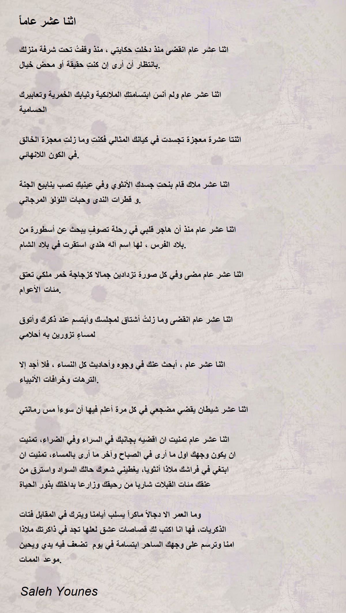 اثنا عشر عام مضى وفي كل صورة تزدادين جمالا كزجاجة خمر ملكي تعتق مئات الأعوام.