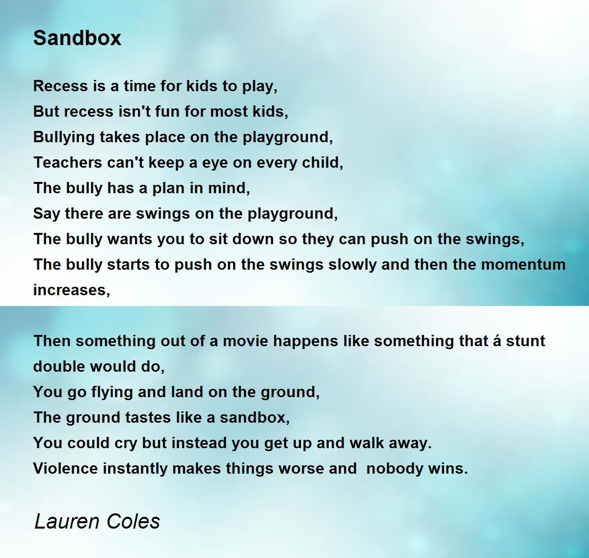The bully wants you to sit down so they can push on the swings,