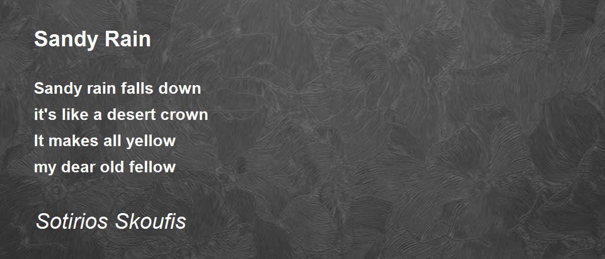 Sandy rain falls down it's like a desert crown It makes all yellow my dear old fellow