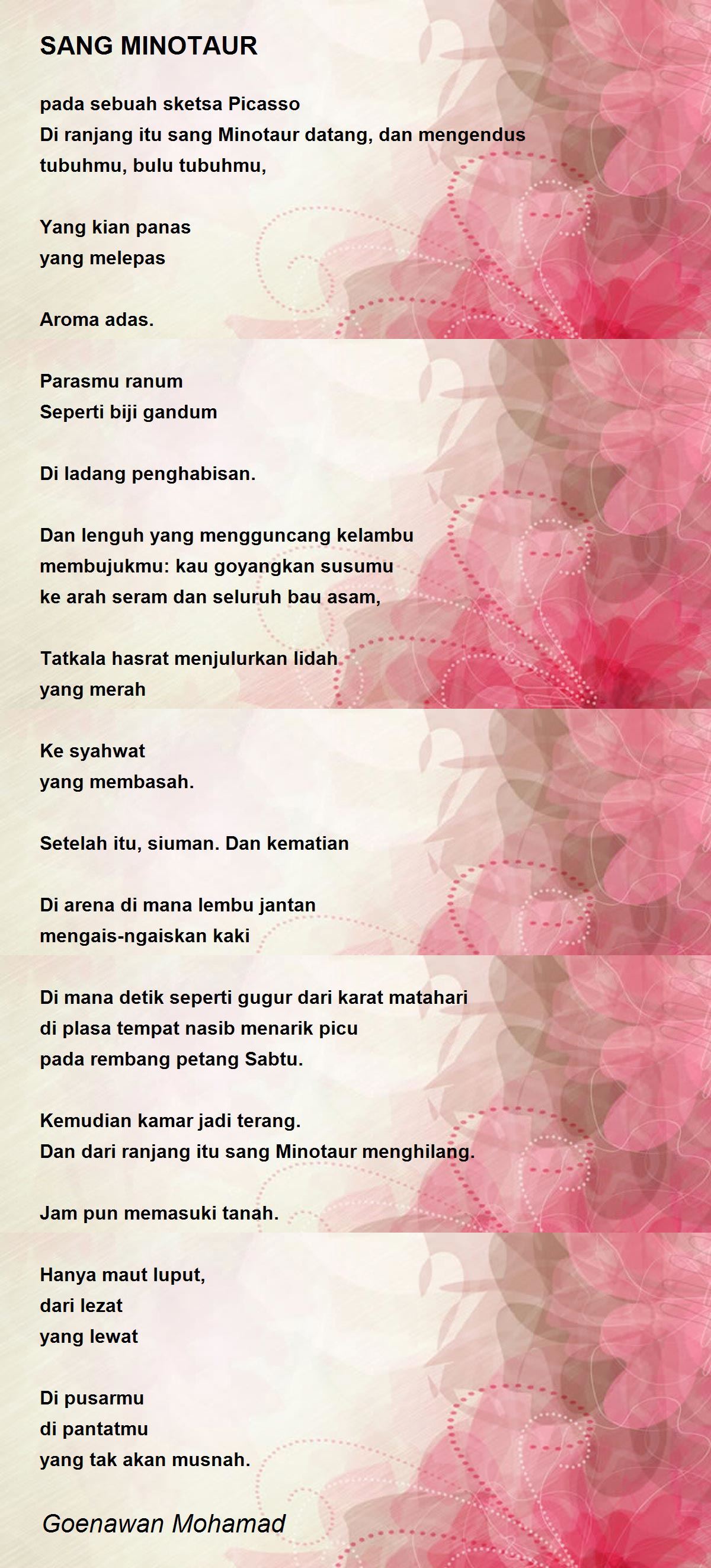 Di ranjang itu sang Minotaur datang, dan mengendus