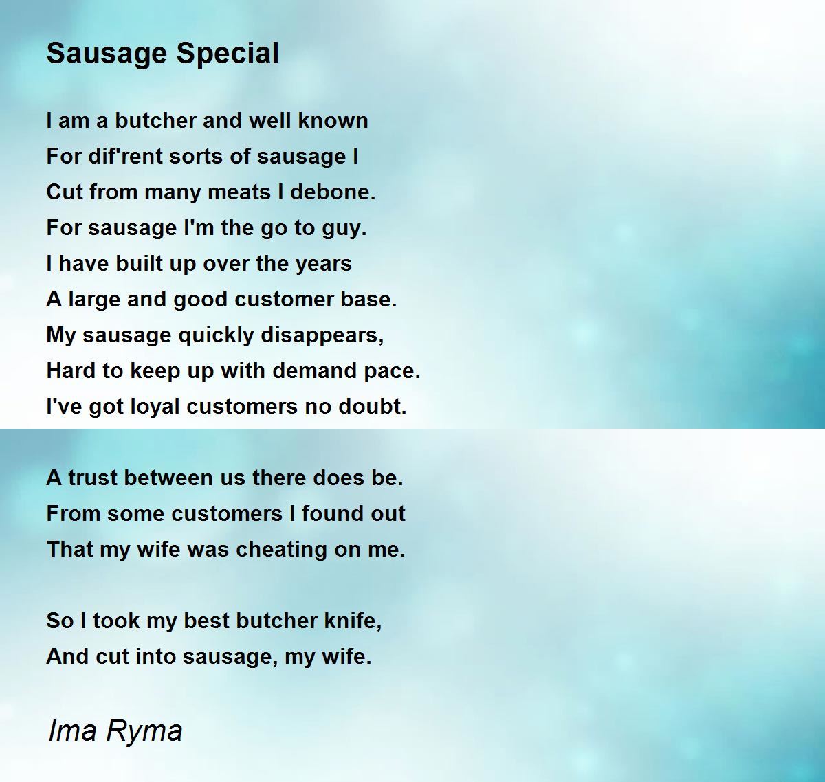 For dif'rent sorts of sausage I