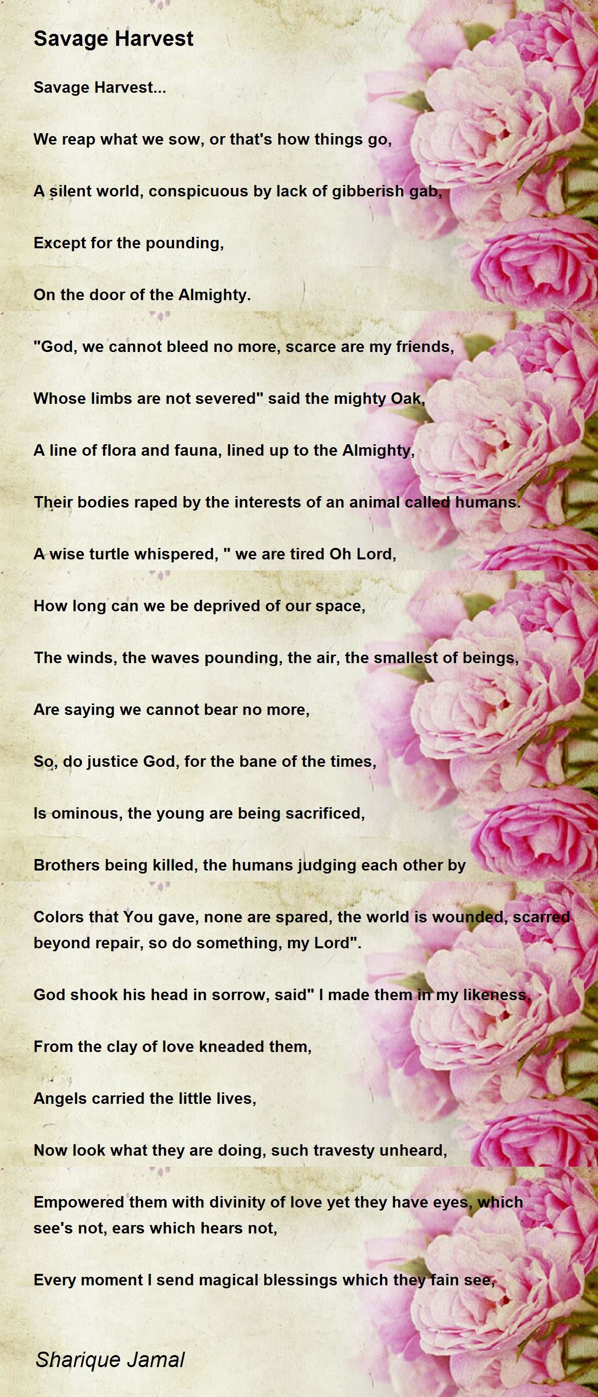 Such goes the tale, a savage harvest,