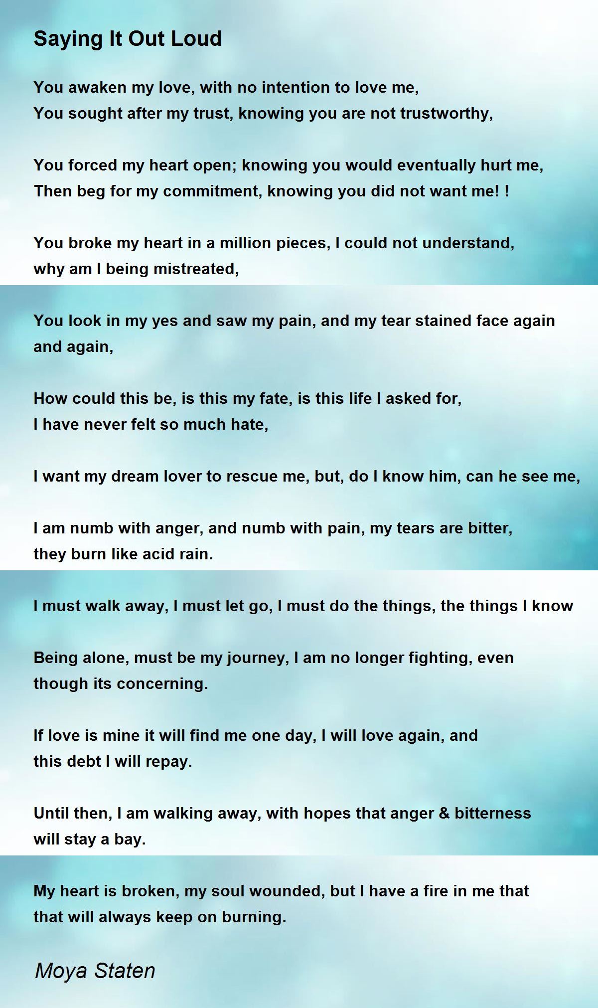 You broke my heart in a million pieces, I could not understand, why am I being mistreated,