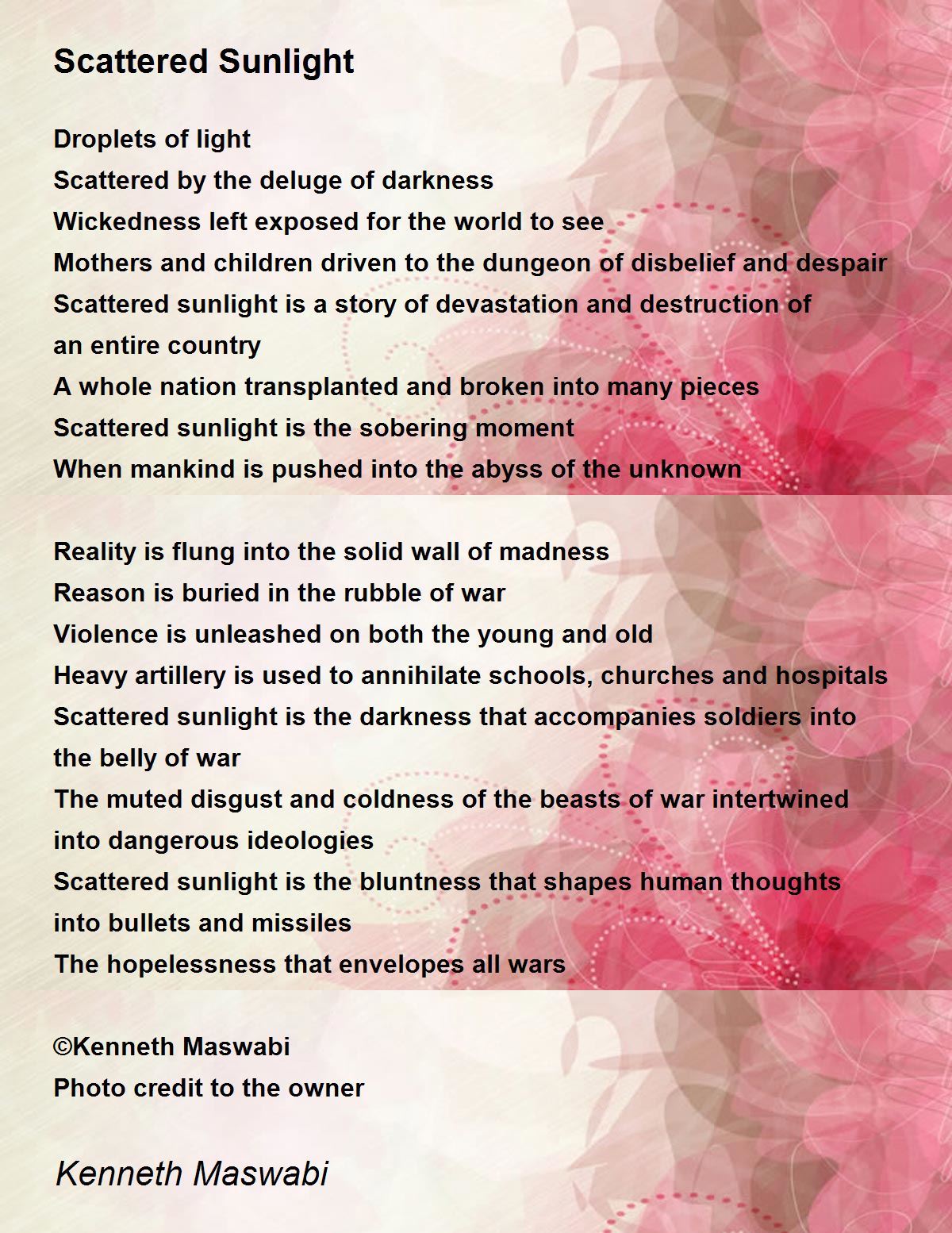 Scattered sunlight is a story of devastation and destruction of an entire country