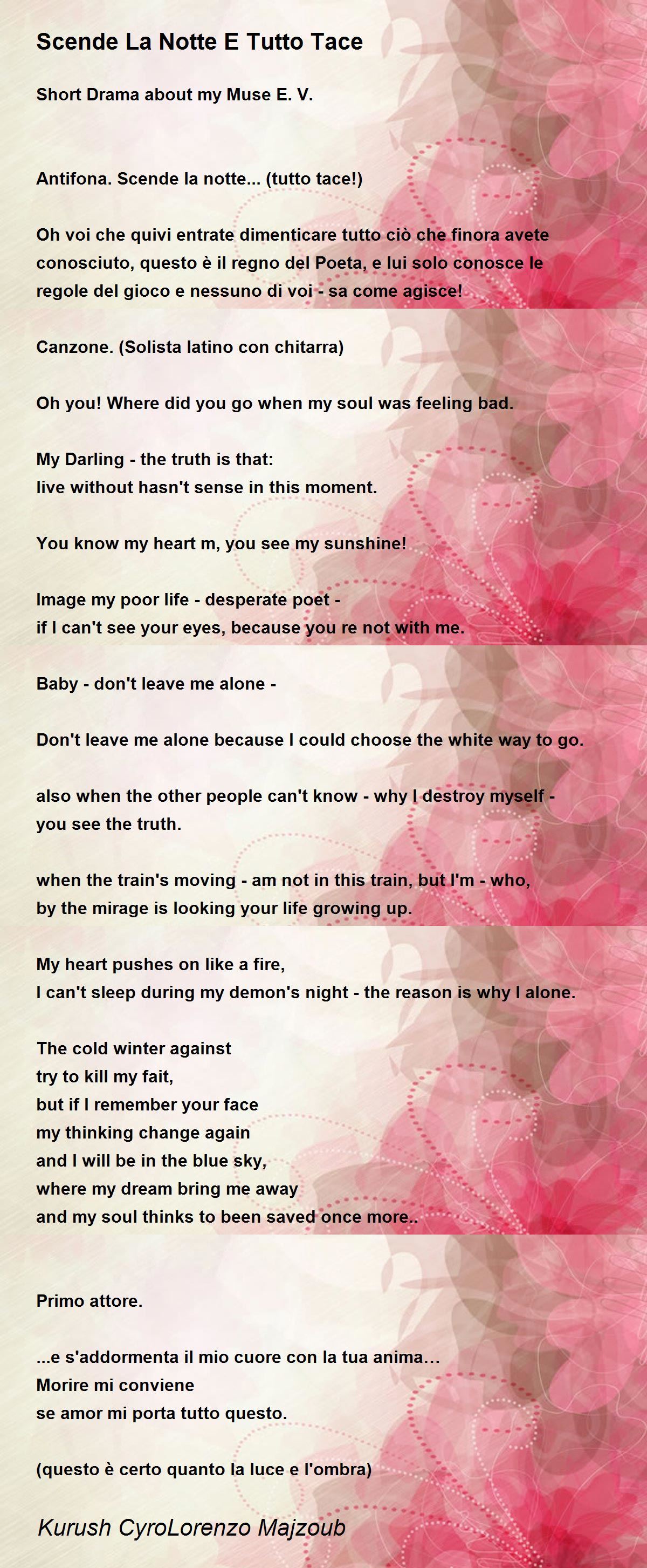 Tutto di noi mi rimembrano questa fatalità improvvisa.