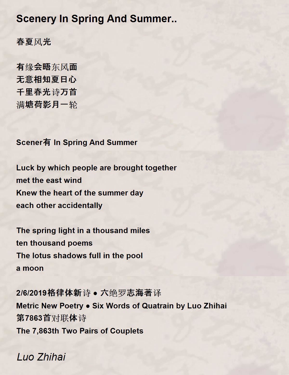 Metric New Poetry ● Six Words of Quatrain by Luo Zhihai