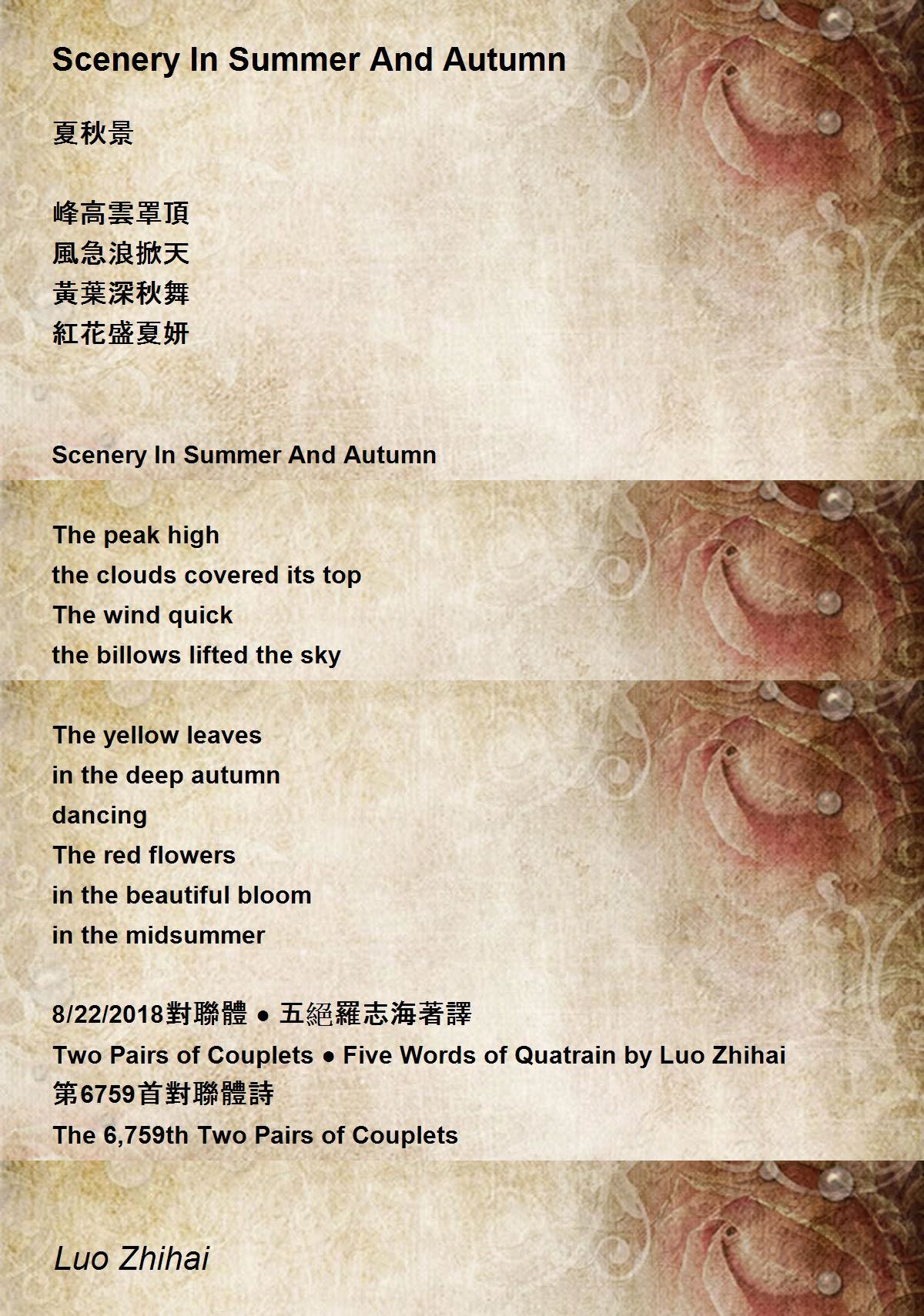 8/22/2018對聯體 ● 五絕羅志海著譯