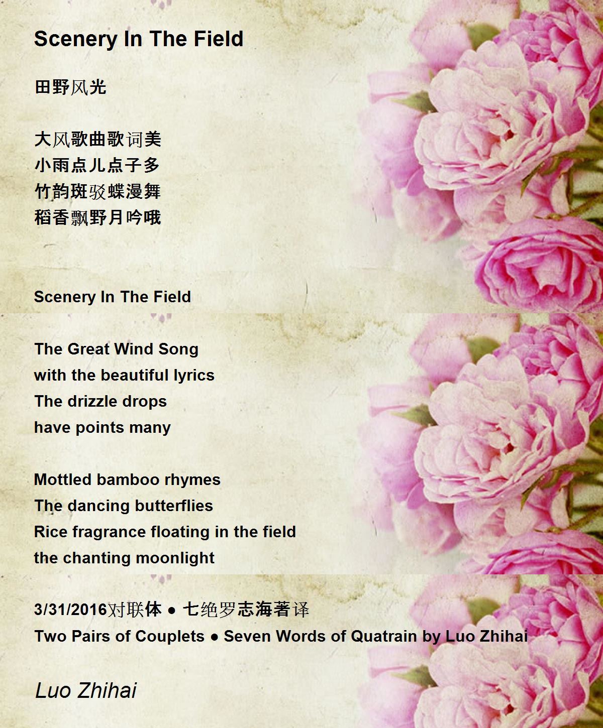 3/31/2016对联体 ● 七绝罗志海著译