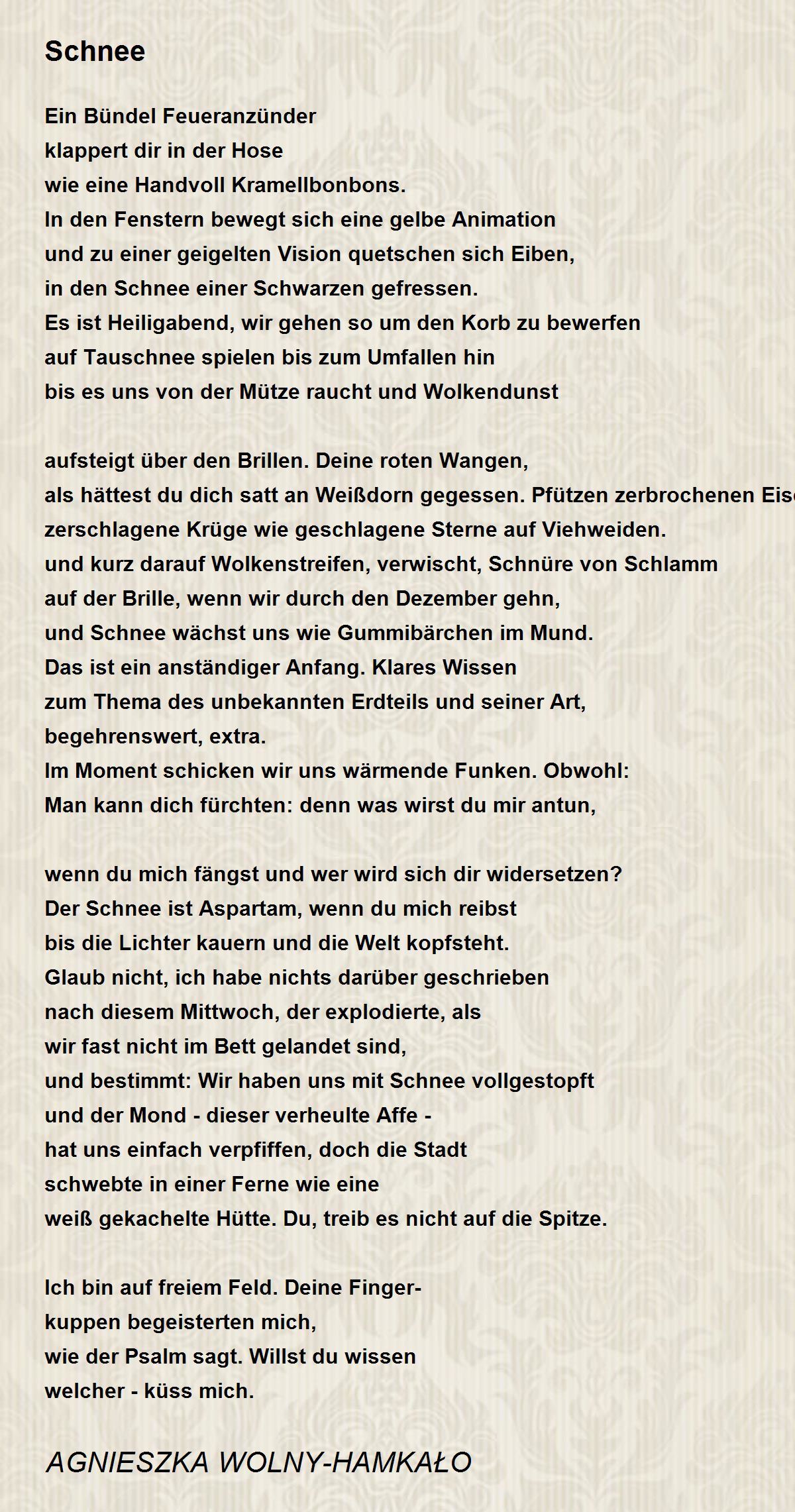 Der Schnee ist Aspartam, wenn du mich reibst