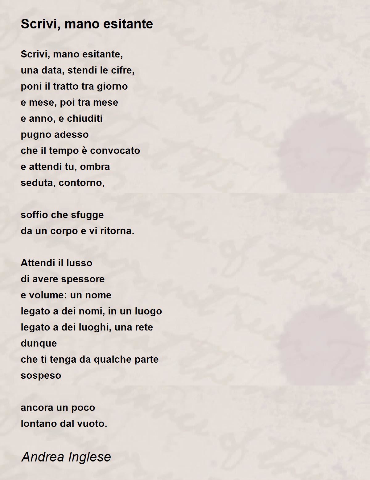 Scrivi, mano esitante,