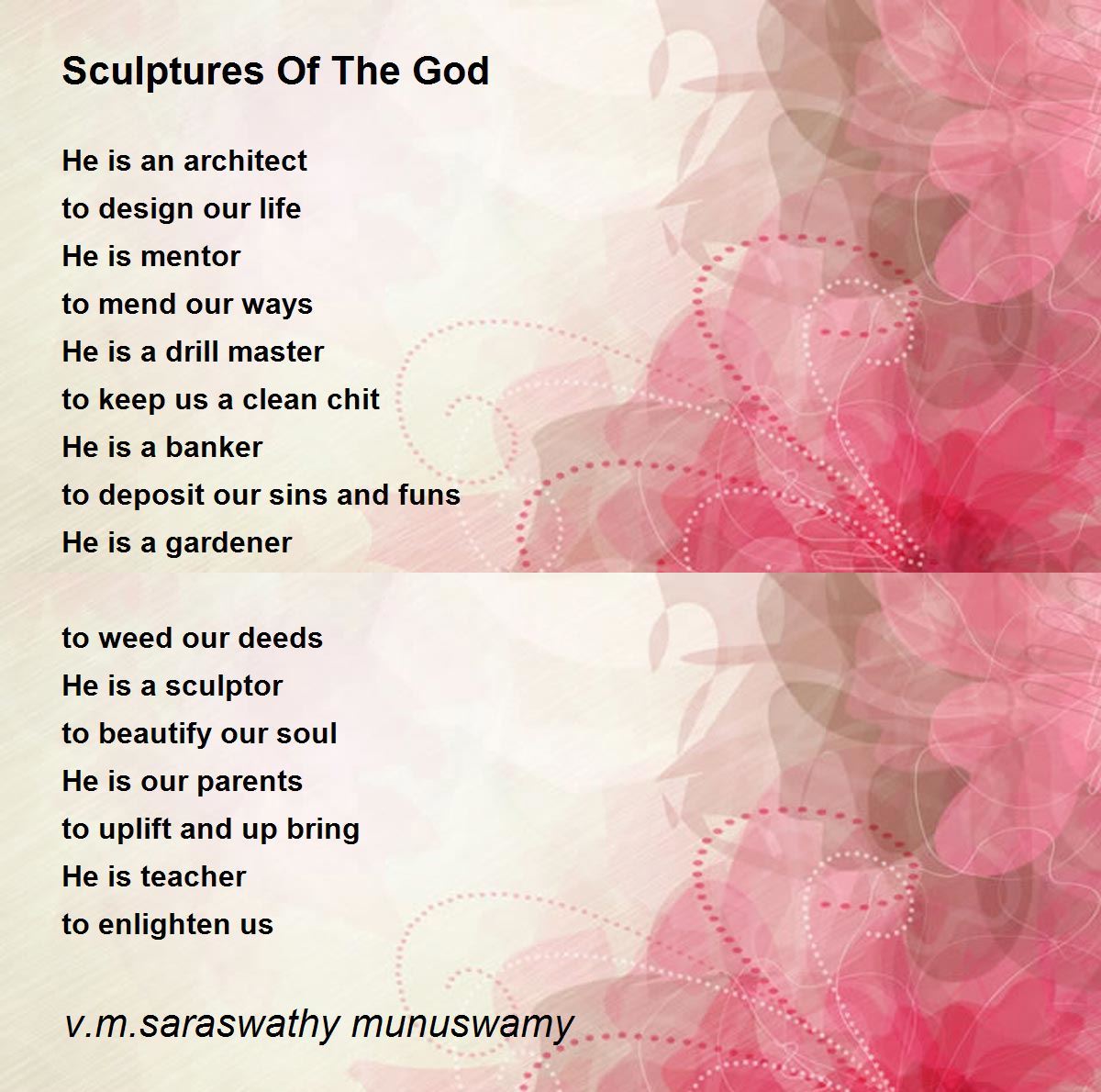 He is a banker to deposit our sins and funs He is a sculptor to beautify our soul very very nice thoughts put together....they are all praises that come out of a logical mind. thank you dear poetess. tony