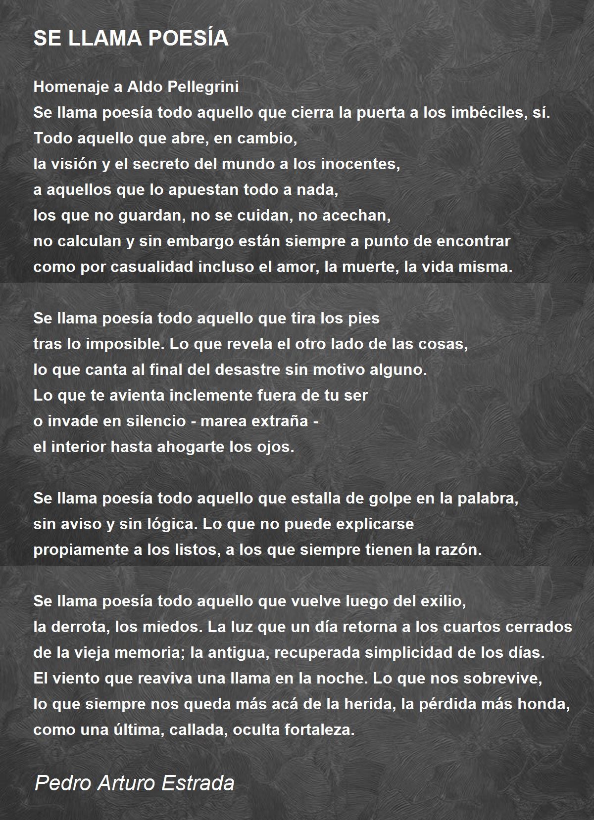 Se llama poesía todo aquello que estalla de golpe en la palabra,