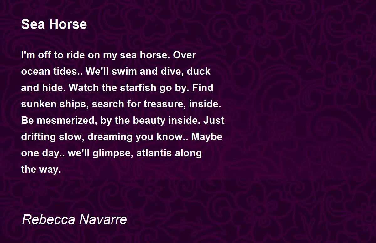 I'm off to ride on my sea horse. Over ocean tides.. We'll swim and dive, duck and hide. Watch the starfish go by
