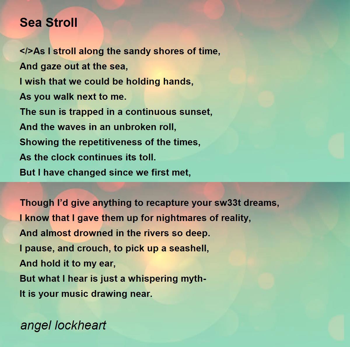</>As I stroll along the sandy shores of time,