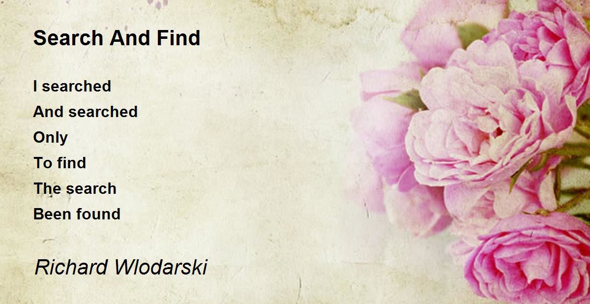 Cryptic Searches searches sometimes end in reality found searches soul driven end sometimes in discovery someone else has already claimed the prize Inspired by the poem 'Search And Find' by the poet Richard Wlodarski. Dedicated to the poet Richard Wlodarski.