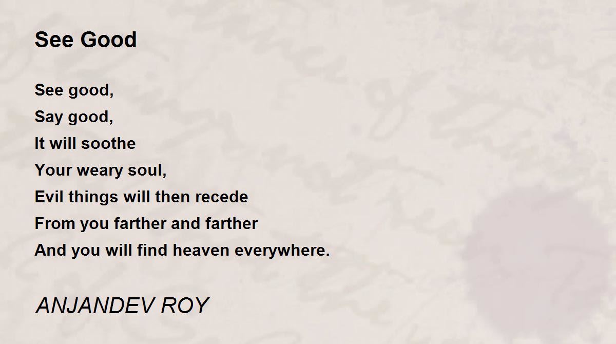 A very lovely thought. Goodness in everything we see and say will always bring joy and uplift the spirit. A well thought out write.