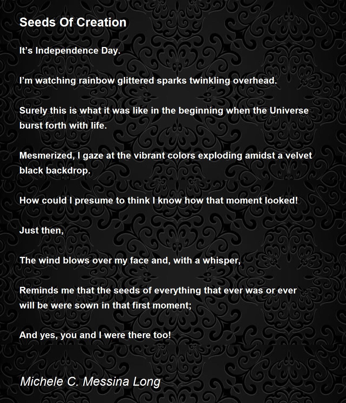 Reminds me that the seeds of everything that ever was or ever will be were sown in that first moment;