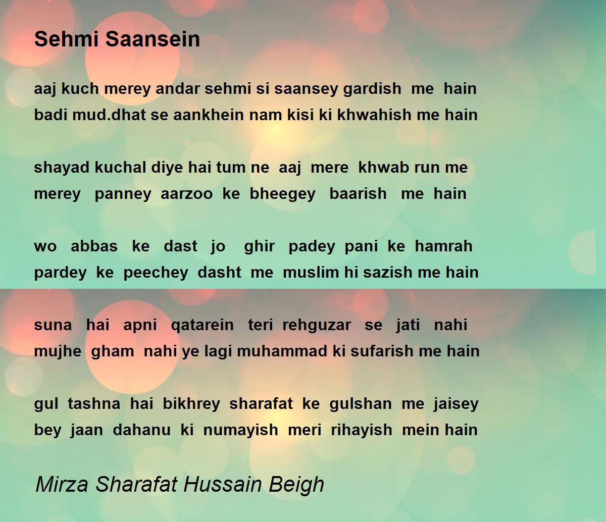 aaj kuch merey andar sehmi si saansey gardish me hain