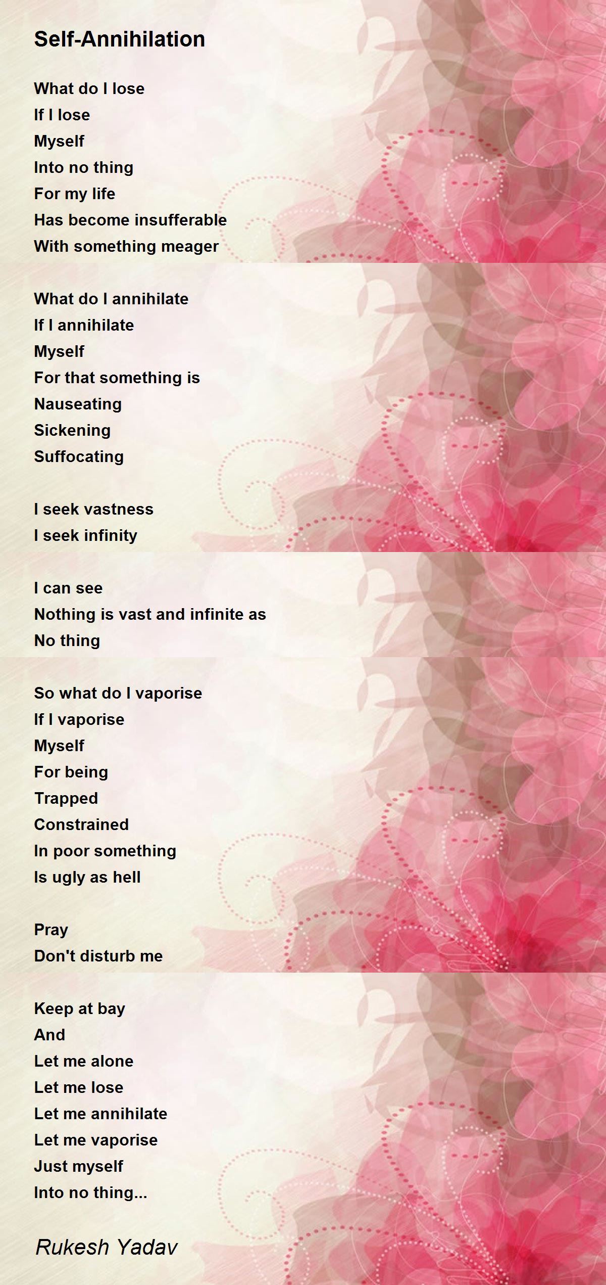 What do I annihilate If I annihilate Myself For that something is Nauseating Sickening Suffocating- - love is a mystery. annihilation of self does not bring anything for anyone.. tony