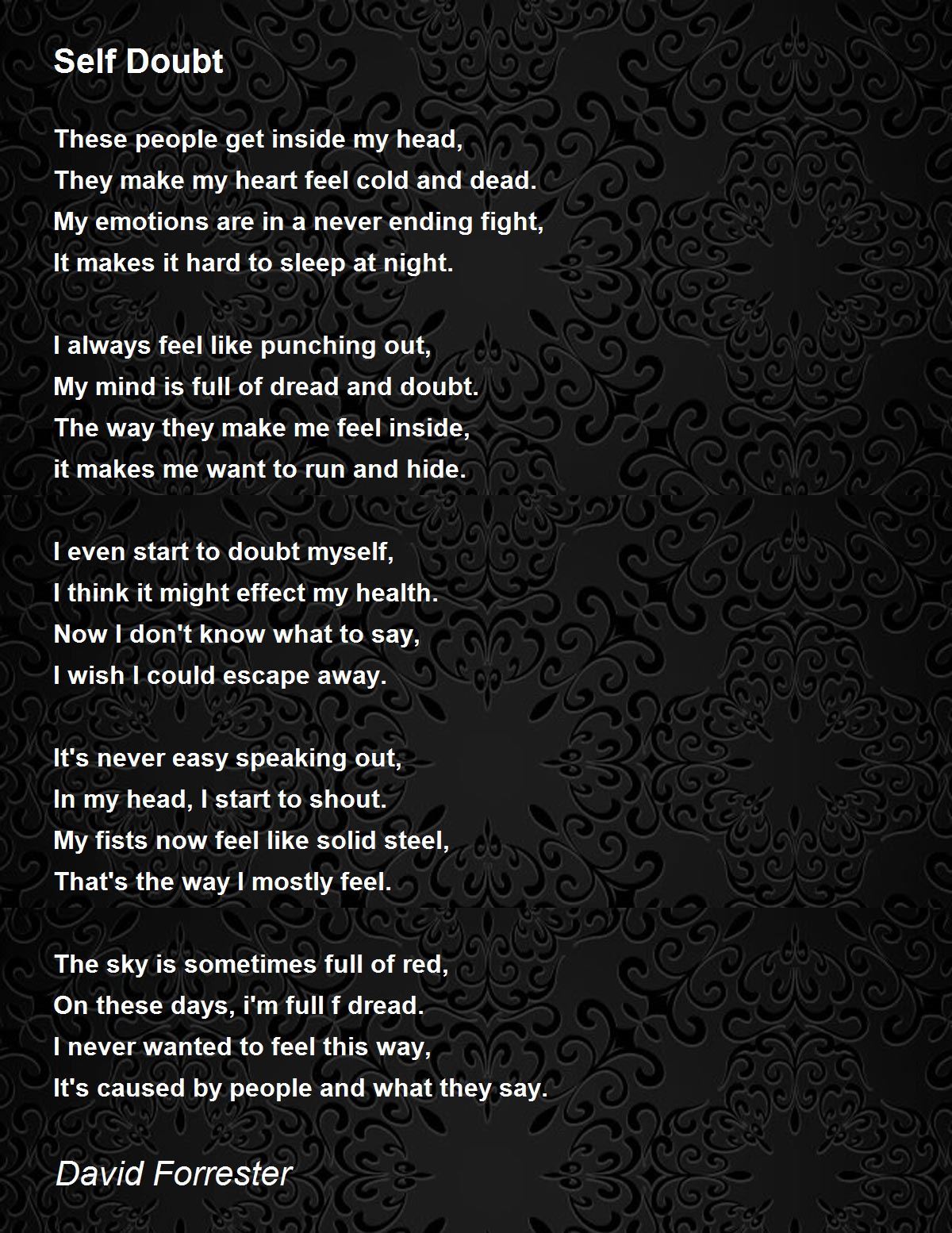 My mind is full of dread and doubt.