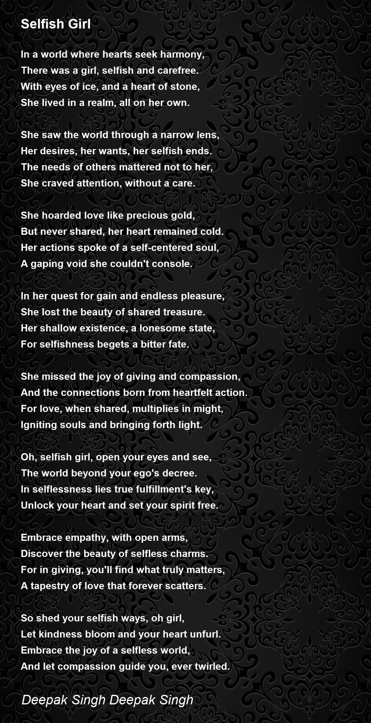 There was a girl, selfish and carefree.