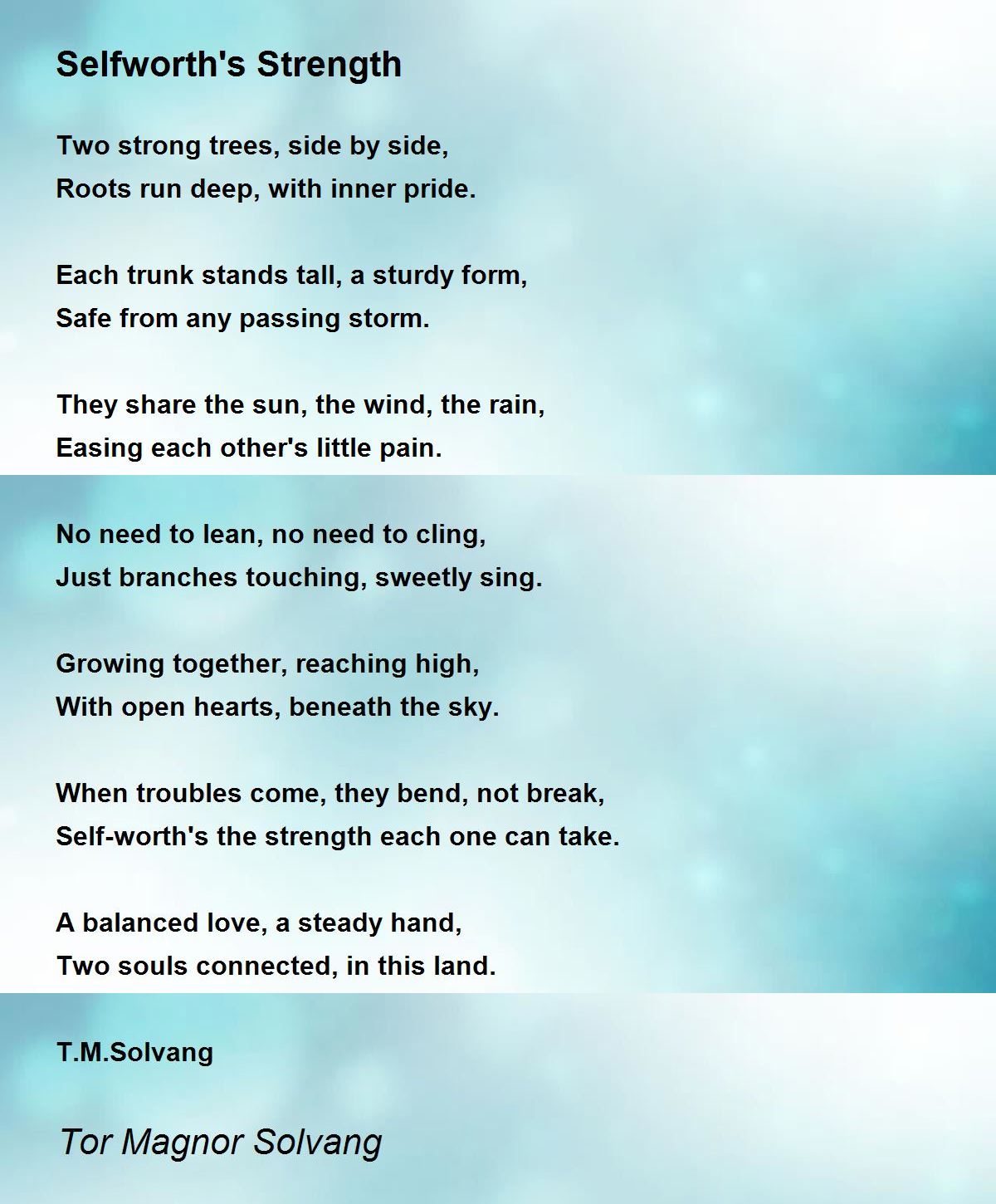 Self-worth's the strength each one can take.