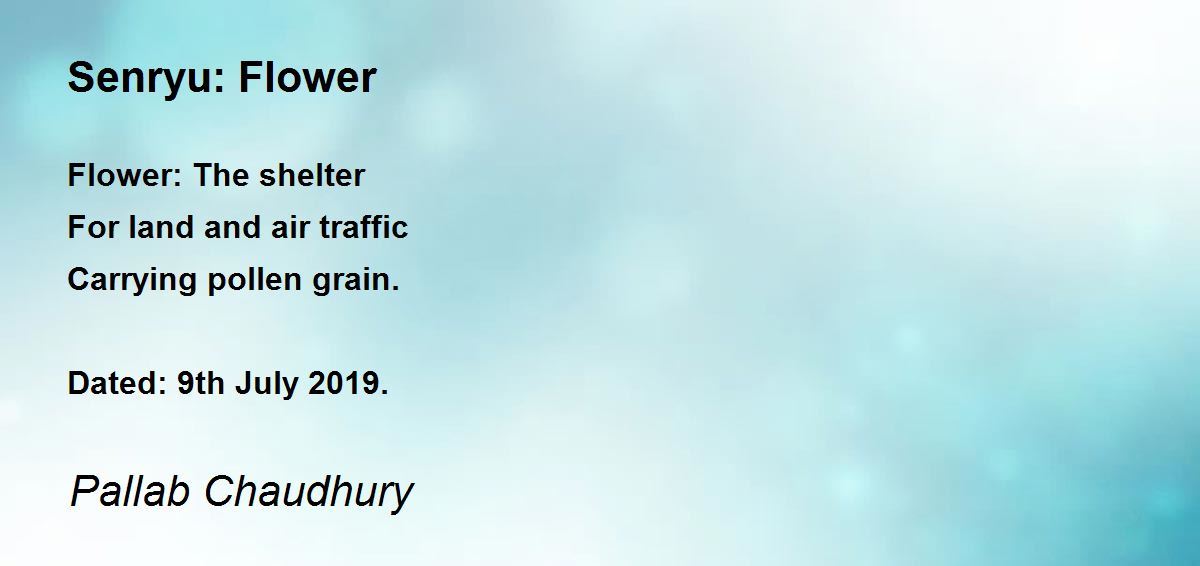 Flower: The shelter For land and air traffic Carrying pollen grain. Dated: 9th July 2019.