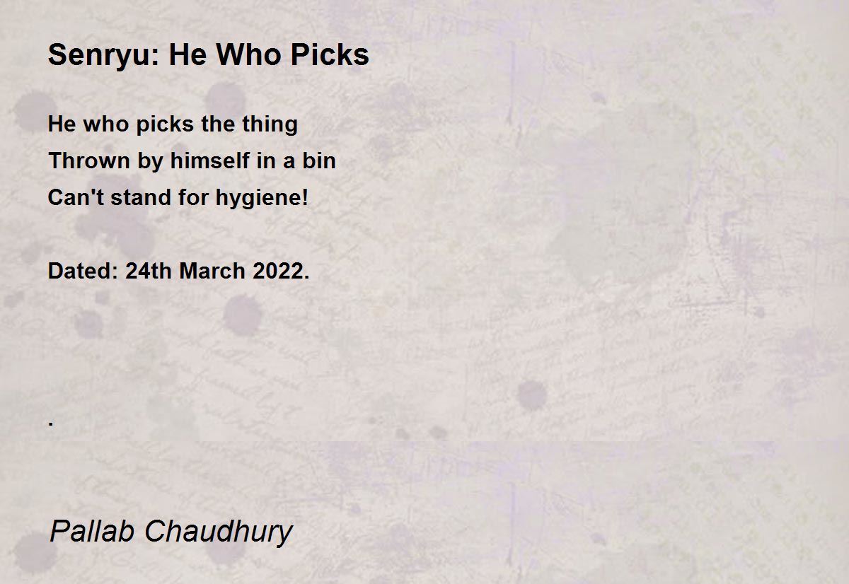 He who picks the thing Thrown by himself in a bin Can't stand for hygiene! Dated: 24th March 2022. .