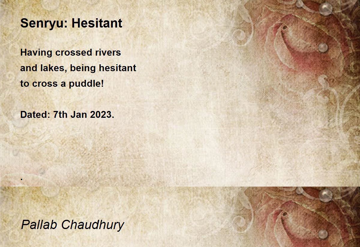 Having crossed rivers and lakes, being hesitant to cross a puddle! Dated: 7th Jan 2023. .