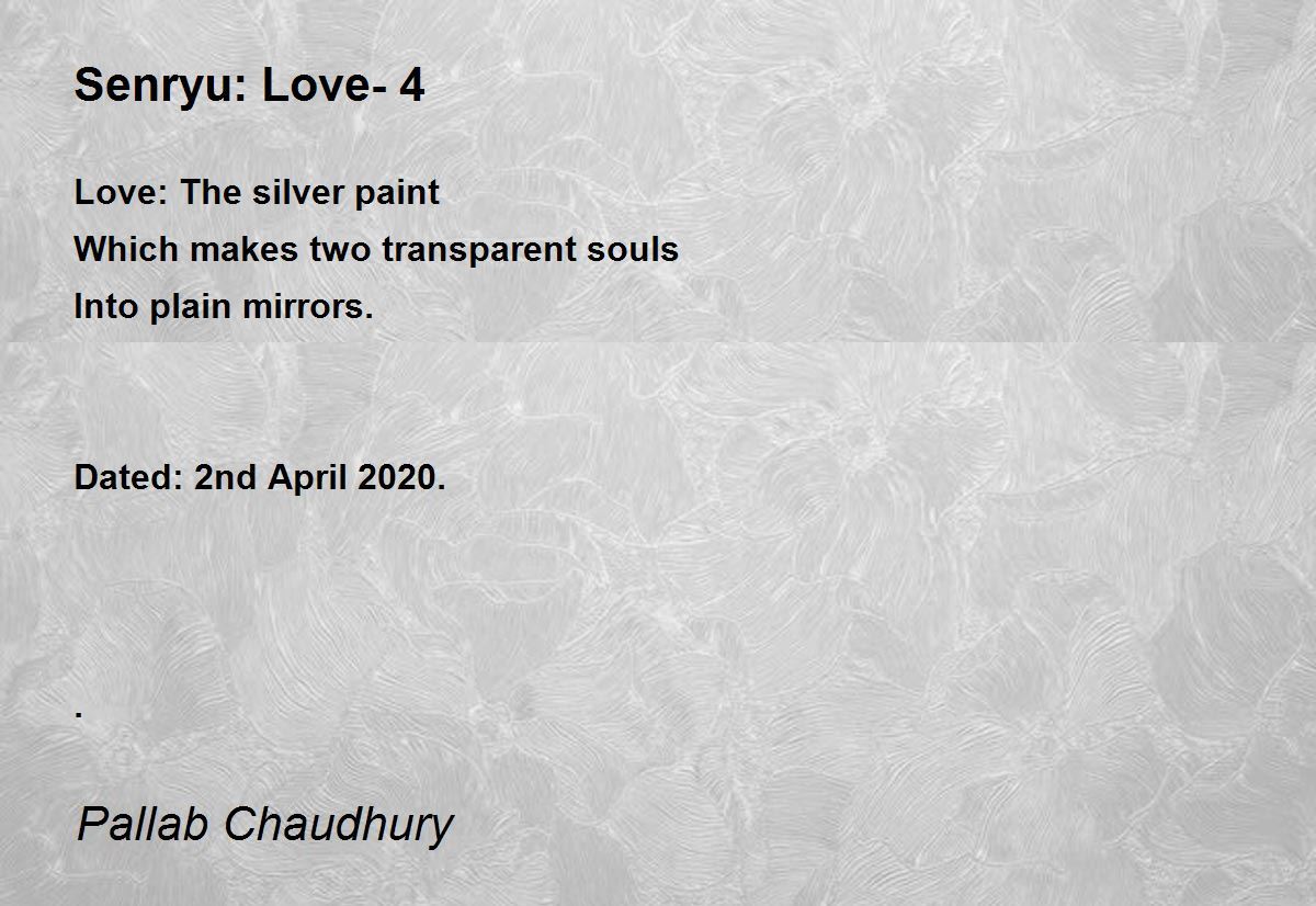 Love: The silver paint Which makes two transparent souls Into plain mirrors. Dated: 2nd April 2020. .