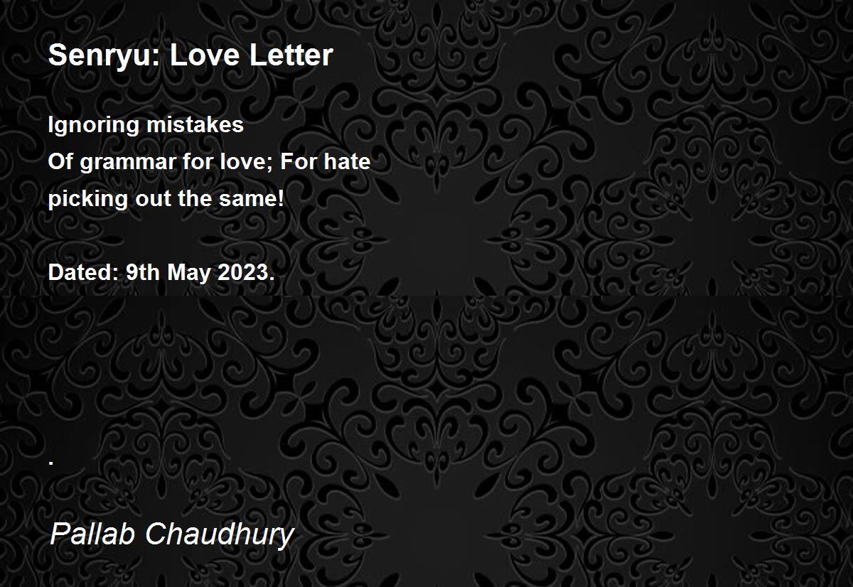 Ignoring mistakes Of grammar for love; For hate picking out the same! Dated: 9th May 2023. .