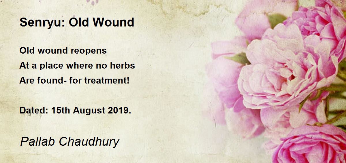 Old wound reopens At a place where no herbs Are found- for treatment! Dated: 15th August 2019.