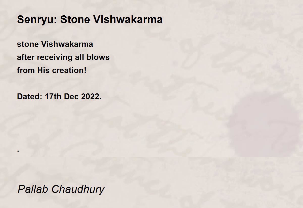 stone Vishwakarma after receiving all blows from His creation! Dated: 17th Dec 2022. .
