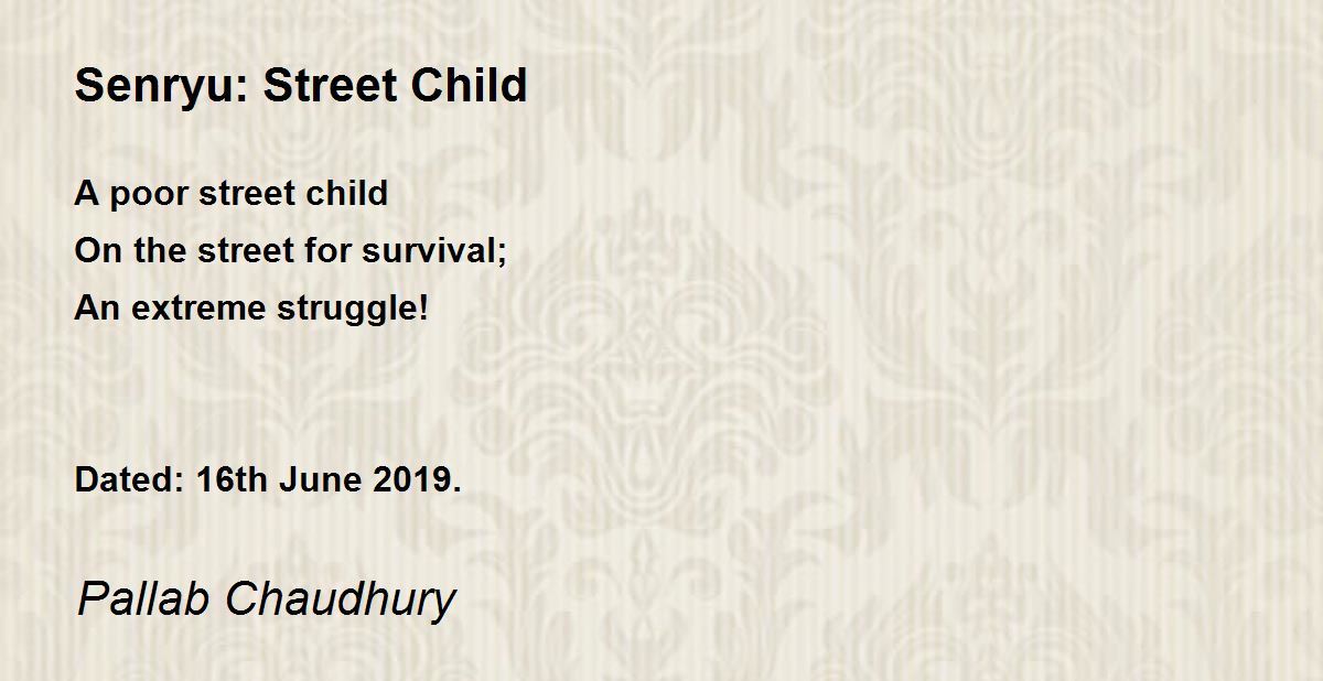 Street Child! ! Hustle and bustle along the line. Thanks for sharing this poem with us.