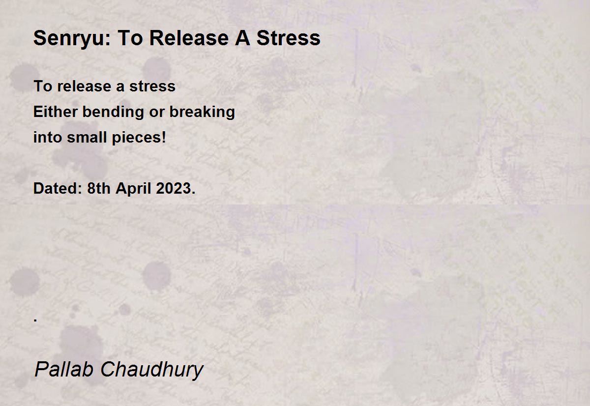To release a stress Either bending or breaking into small pieces! Dated: 8th April 2023. .