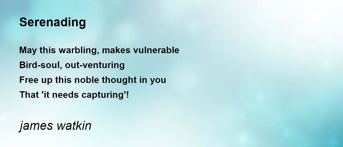 May this warbling, makes vulnerable Bird-soul, out-venturing Free up this noble thought in you That 'it needs capturing'!