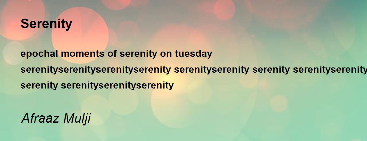 epochal moments of serenity on tuesday