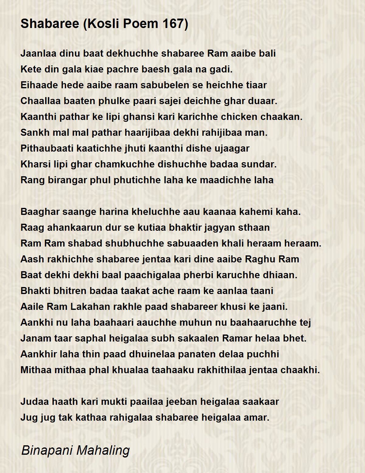 Aash rakhichhe shabaree jentaa kari dine aaibe Raghu Ram